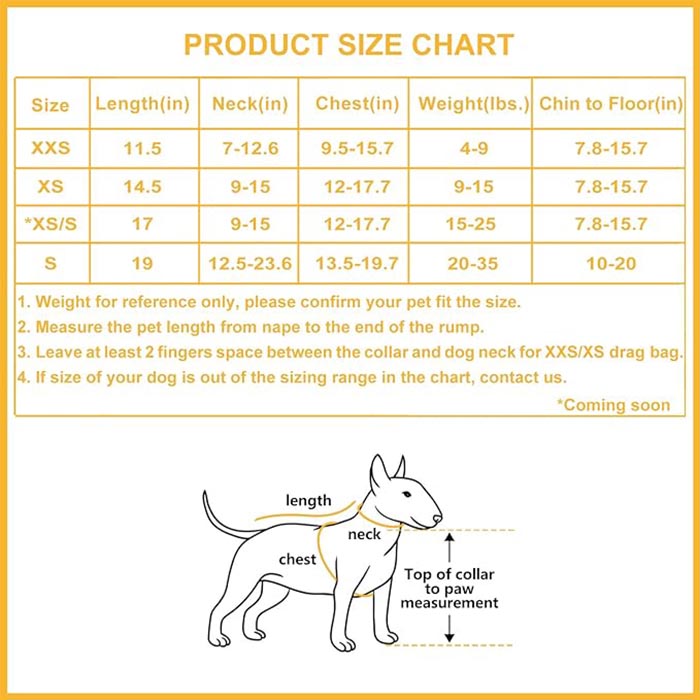 | Size | Length(in) | Neck(in) | Chest(in) | Weight(lbs.) | Chinto Floor(in) |